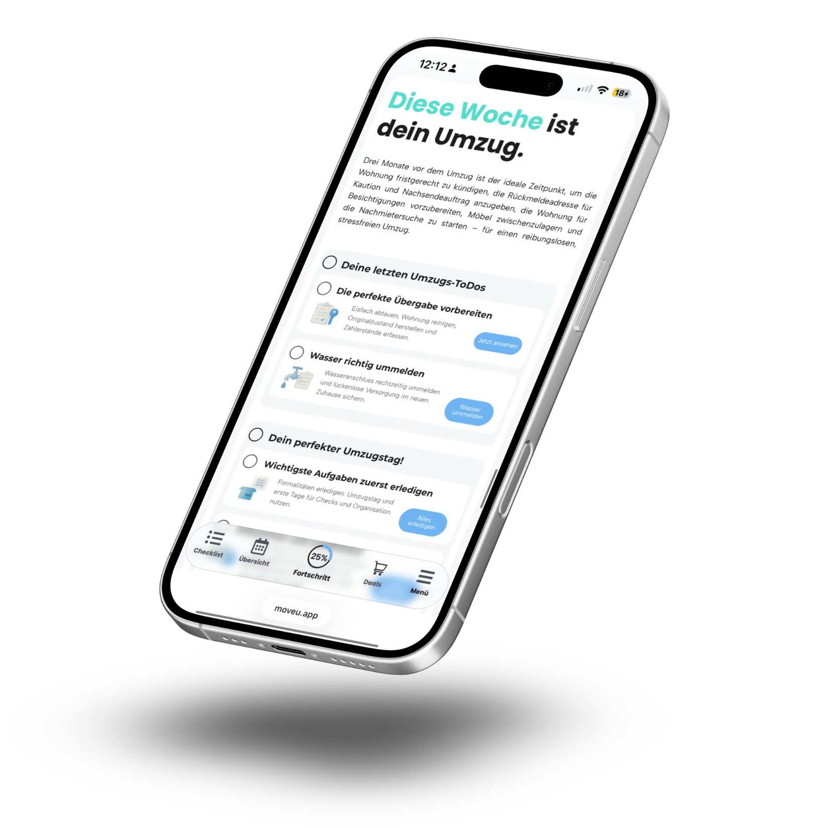 Erhalte alle Tipps, Erinnerungen und exklusive Umzugsdeals – automatisch abgestimmt auf dein Umzugsdatum.